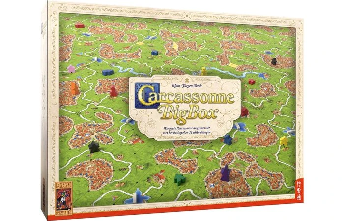 Carcassonnepakket met het basisspel en maar liefst 11 uitbreidingen in het nieuwe artwork! Hiermee kun je oneindig variëren. Het speelmateriaal past praktisch in de doos, waardoor je alles altijd gemakkelijk bij de hand hebt.