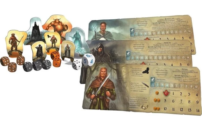 Nieuwe Helden bevat 4 heldentableaus met bijbehorend speelmateriaal en interessante speciale eigenschappen. Zo heeft de ene held al allerlei bijzondere voorwerpen, maar niet zoveel kracht- en wilskracht, terwijl een andere juist wel heel sterk is, maar geen groot voorwerp kan dragen. Verder kun je kiezen voor een aantal varianten, zoals “het broederschild” en “de zwarte heraut” om het spel iets eenvoudiger of juist moeilijker te maken.