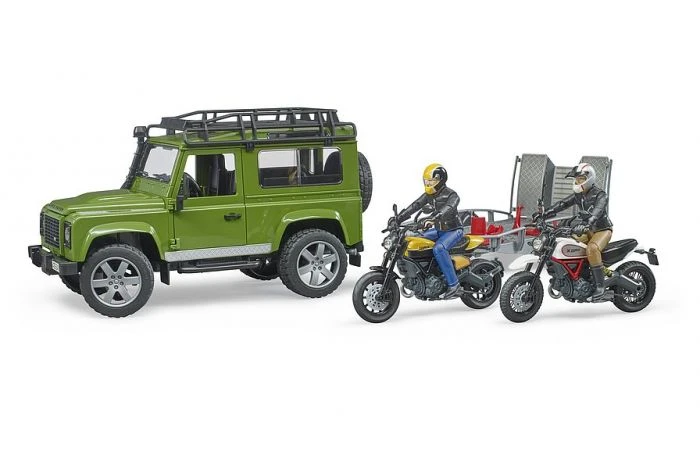 Bruder 2589 Land Rover Defender, Trailer + Scrambler Ducati Full Throttle