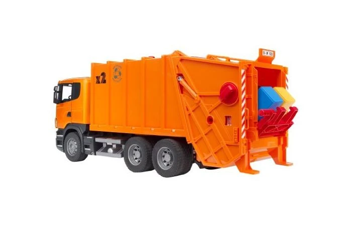 Met de vuilnisauto is het mogelijk om afval te sorteren, te laden en te lossen. De kantelbare afvalbak zorgt ervoor dat je lekker door kan werken tijdens een lange dag! Als je weer op de vuilnisbelt bent, kun je de chauffeur (niet inbegrepen) uit laten stappen door de deuren open te doen en als je de wagen wegzet kun je netjes de spiegel inklappen. Bij de vrachtwagen worden twee vuilnisballen geleverd.
