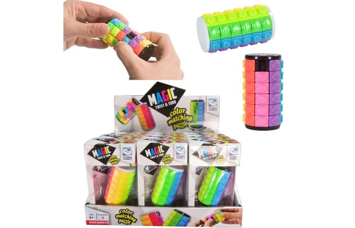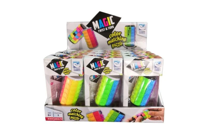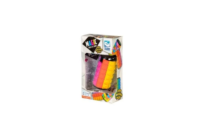De Clown Magic Puzzle Twist and Turn is een ronde schuifpuzzel, waarbij je elke rij ook kunt draaien. Je kunt de vlakken dus zowel horizontaal als verticaal verschuiven. Je begint natuurlijk bij het open vlakje, en dan kan de uitdaging beginnen! In de verpakking vind je een boekje, met diverse patronen die je kunt maken. Geef je creativiteit de ruimte en bedenk zelf de mooiste vlakverdeling met deze fidget! Voor 1 speler vanaf 8 jaar.