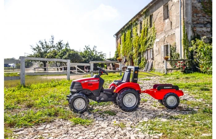 Deze prachtige Falk Case IH tractor in een felle rode kleur is geschikt voor elke avontuurlijke peuter en kleuter en lijkt precies op de echte Case IH traktoren. In de loskoppelbare laadbak kan alles meegenomen worden – van speelgoed tot zand en hooi! Door het verstelbare zitje kan de tractor met uw kind meegroeien. Dit maakt de Falk Case IH geschikt voor kinderen vanaf 3 jaar, met een maximum gewicht van 50 kilogram. Toet toet, laat met je toeter iedereen weten dat je de hoek om komt!