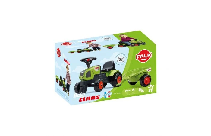 Deze kunststof Falk ‘Claas Axos 310’ groene looptractor is uitgevoerd in origineel Claas design, heeft een totale lengte van 97cmx30x37cm. Wordt geleverd inclusief aanhanger. Het is een mooie looptractor van een robuuste kwaliteit, heeft kunststof wielen die zeer slijtvast zijn en het stuur bevat een toeter met geluidsfunctie. De aanhanger is makkelijk te koppelen en te ontkoppelen: zo kan er van alles vervoerd worden. Geschikt voor kinderen vanaf 1 jaar en tot een gewicht van max. 30kg.