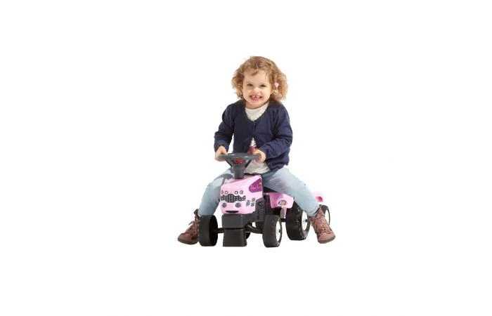 Deze kunststof Falk ‘Princess Trac’ roze looptractor heeft een afmeting van 97 x 30x 37 cm. Wordt geleverd inclusief aanhanger. Het is een mooie looptractor van een robuuste kwaliteit, heeft kunststof wielen die zeer slijtvast zijn en het stuur bevat een toeter met geluidsfunctie.