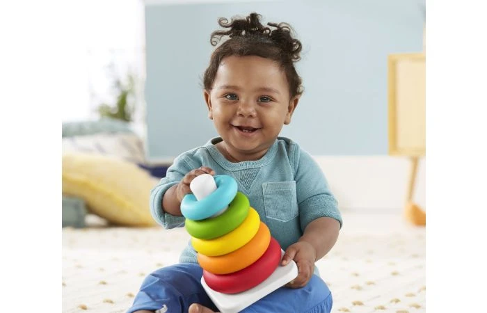 Deze Fisher-Price Kleurenringpiramide, gemaakt van plantaardige materialen, biedt kleintjes klassiek stapelplezier. De piramide heeft een wiebelige tuimelaarbasis en 5 kleurrijke ringen voor kleine handjes om te grijpen en te stapelen. Goed voor de ontwikkeling van de oog-handcoördinatie. Bij het van groot naar klein stapelen leert je baby over verschillende afmetingen. Minimaal 90 procent van het speelgoed is gemaakt van ethanol uit suikerriet. Wordt geleverd met kartonnen wikkel. Geschikt voor kinderen vanaf 6 maanden.