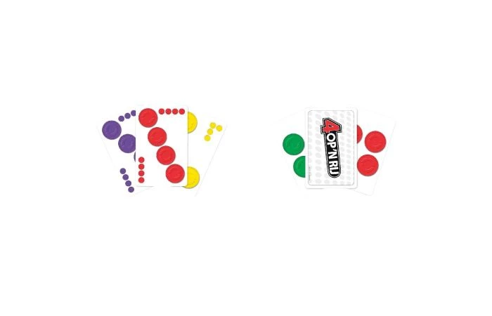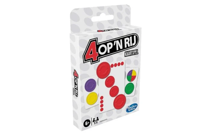 Het klassieke 4 op ‘n rij-spel is er nu ook in de vorm van een leuk kaartspel dat je snel kunt spelen! In deze versie van 4 op ‘n rij kies je 2 missiekaarten van de stapel en houd je de patronen geheim. Daarna neem je 4 op ‘n rij-schijven en moet je proberen om patronen te maken die overeenstemmen met je missies. Het spel is altijd spannend, of je nu 4 op een rij met paars moet maken, een vierkant met groen moet verkrijgen of schijven moet combineren tot een L-vorm met geel. Als je een schijfkaart met een power-upsymbool trekt, kun je een eenmalige actie uitvoeren die het verloop van het spel supersnel kan veranderen. Je moet 4 missies volbrengen om te winnen. Dit kaartspel is snel te spelen en praktisch voor kinderen om hun 4 op een rij-spel onderweg of naar het huis van een vriend mee te nemen. Geschikt voor 2 tot 4 spelers vanaf 6 jaar.