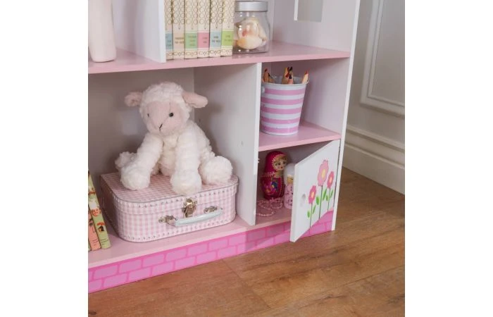 De boekenkast in poppenhuis-stijl van KidKraft past prachtig bij de collectie klassieke poppenhuizen van KidKraft. Deze leuke boekenkast is vormgegeven in de stijl van de typische KidKraft poppenhuizen. Er is voldoende ruimte voor boeken, speelgoed en andere kleine spulletjes. Een van de vakken heeft zelfs een deurtje, zodat niet alles in het zicht ligt.