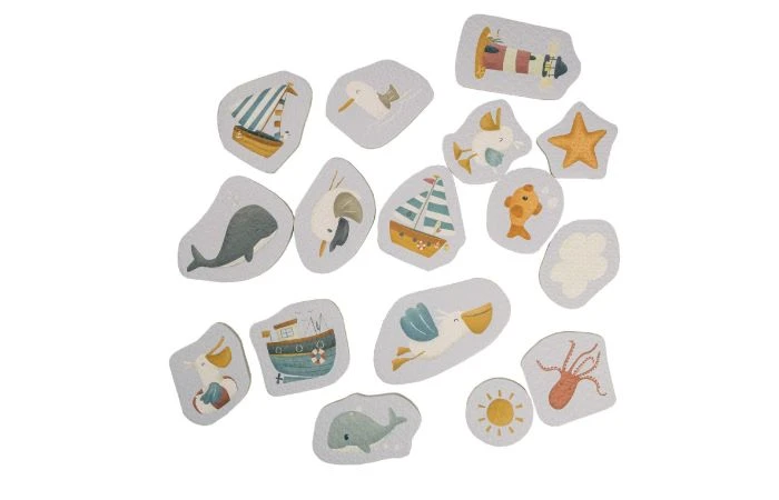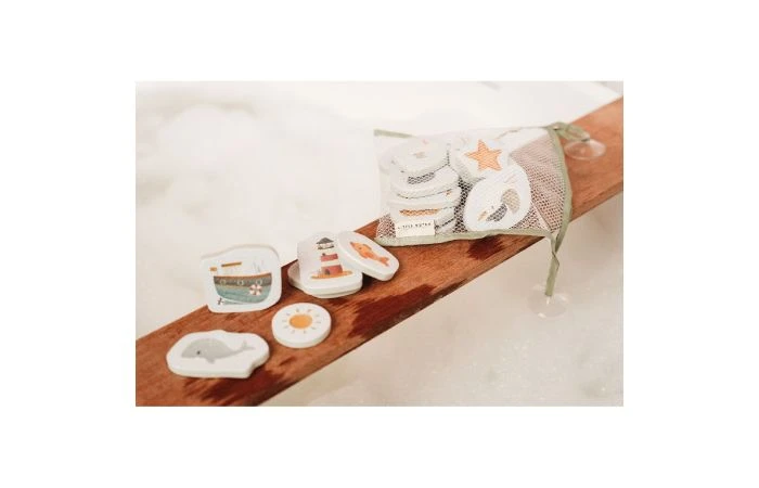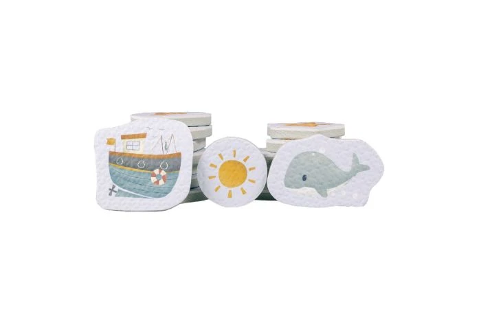 Lekker spelen in bad met deze vrolijke foam badfiguren van Little Dutch! In deze set zitten 16 figuren, uitgevoerd in de blauwe kleurstelling van het Sailors Bay thema. De badfiguren zijn gemaakt van foam. Maak ze nat en plak ze op de badrand of op de tegels! Handig verpakt in een opbergzakje met zuignappen.