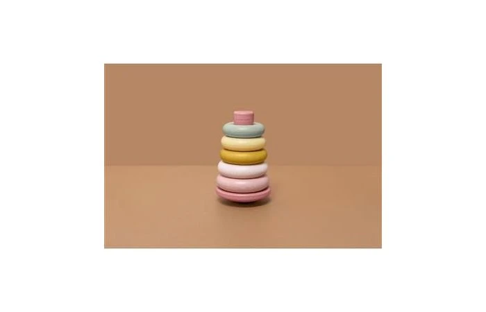 Laat je kindje ringen sorteren en stapelen, met deze supermooie stapelringen van Little Dutch. Dit speelgoed is uitgevoerd in prachtige kleuren, die mooi in je interieur passen: diverse tinten roze, okergeel en zachtgroen. Er zijn 5 verschillende formaten ringen om mee te stapelen, variërend in diameter tussen 8,5 en 13,5 cm. Totale hoogte van het artikel: 20,5 cm. Extra uitdaging: de basis is half rond, waardoor hij een beetje wiebelt op de grond. Goed voor de ontwikkeling van de motoriek! De stapelringen zijn gemaakt van ABS, wat gemakkelijk vast te pakken is voor kleine kinderhandjes. Geschikt voor kinderen vanaf 6 maanden.