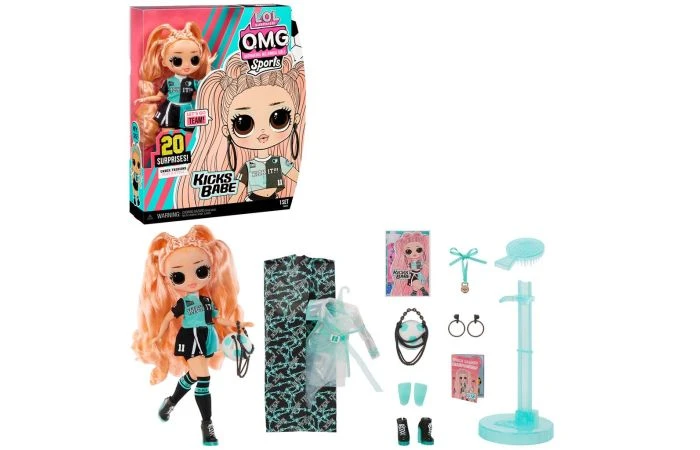 Maak kennis met de gloednieuwe LOL Surprise OMG Sports-modepop Kicks Babe met 20 verrassingen! Kicks Babe is wereldkampioen voetbal en een echte voetbalster! Haar favoriete oefeningen zijn sprints, dribbelen en trappen. Al haar vrienden en vriendinnen weten dat ze de coolste voetbalster is die er is, er geweldig uitziet, prachtig haar heeft en een eigen sportief chique stijl. Elke doos is inclusief een LOL Surprise OMG-modepop, een fantastisch ensemble, schoenen, accessoires met sportthema, een haarborstel en een poppenstandaard. Verzamel allebei de LOL Surprise OMG Sports-poppen, Kicks Babe en Skate Boss! Deze LOL Surprise-modepoppen met stijlvol haar, outfits en veel accessoires met allerlei details zijn het perfecte speelgoed om fantasierijk te spelen! Als cadeaus voor een speciale gelegenheid met urenlang speelplezier voor broers en zussen, vriendjes of vriendinnetjes! Wordt geleverd in full-colour doos. Geschikt voor kinderen vanaf 4 jaar.