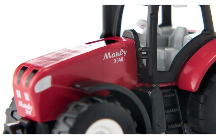 De kleine rode tractor rolt het land op – Deze kleine rode tractor heet Mauly X540. Hij gaat met rubberen banden de weg op maar kan ook op het veld snel en veilig uit de voeten. De cabine is afneembaar en aan de koppeling kunnen alle siku aanhangers worden bevestigd.