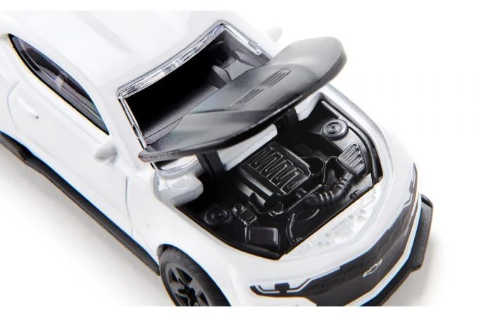 Muscle-Car met V8-Power – Ook de zesde generatie van de Chevrolet Camaro draagt het imago van een typische Muscle-Car. Vooral wanneer de chauffeur de spierballen van de V8-motor laat horen. Dat kan natuurlijk ook wanneer de wagen stilstaat: kap open en de blik valt meteen op de gedetailleerd uitgevoerde motor. Daarmee krijgt de Camaro een plek tussen de andere siku Muscle-Cars: Dodge Challenger, Chevrolet Corvette, Ford Mustang. Vanzelfsprekend is de nieuwste generatie nog sneller en wendbaarder dan de voorgangers en zorgen de rubberen banden voor een nog betere grip. De Chevrolet Camaro kan echter ook anders: door de trekhaak wordt hij een coole trekker voor een boottrailer of een aanhanger voor de motor.