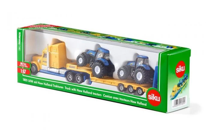 De stoere US-truck in het design van het wereldberoemde tractormerk New-Holland trekt zonder problemen twee grote tractoren uit de serie T8. De modellen zijn voor het grootste deel gemaakt van metaal en uitgevoerd in de typische New Holland kleuren blauw en geel. De cabines van de tractoren zijn afneembaar. Alle voertuigen zijn voorzien van rubberbanden op velgen getrouw naar het origineel.