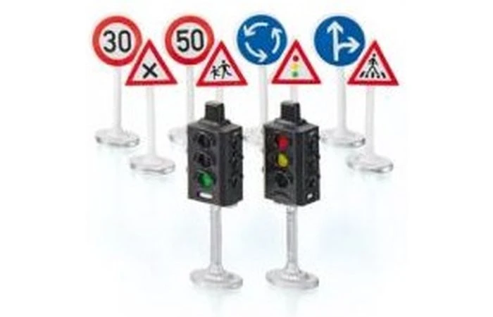 Toebehorenset voor de SIKUWorld. 2 verkeerslichten en 8 verkeersborden om de stad verder uit te breiden.