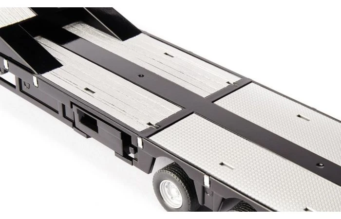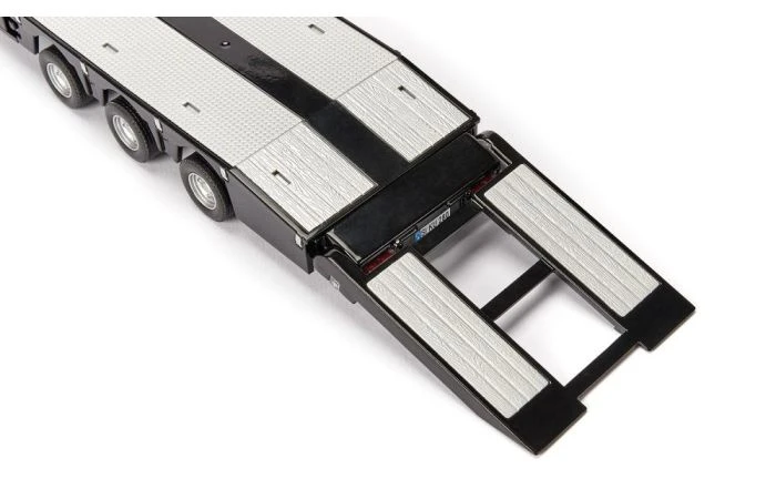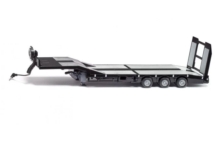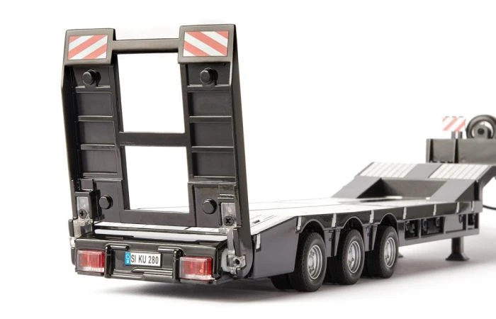 De EURO-dieplader van de Nederlandse fabrikant Nooteboom wordt beschouwd als een van meest robuuste modellen op de markt. Dankzij de hydraulische besturing kunnen de zware speciale transportvoertuigen bovendien uitstekend manoeuvreren. De Nooteboom EURO-trailer vormde ook het uitgangspunt voor de 3-assige dieplader van siku. De oplegger heeft de vorm van een diep bed, achterop bevindt zich een elektronische oprijhelling om de zware last gemakkelijker te kunnen laden. Het chassis van het model is van metaal, de opbouw is van kunststof. Voor extra stabiliteit tijdens stilstand kunnen er handmatig steunpoten worden uitgetrokken. Achterop de oplegger bevinden zich vier LED’s: twee rode rijlichten en twee knipperlichten. De dieplader wordt via een kabel met twee klinkstekkers met de bijbehorende Bluetooth-trekker uit de SIKU CONTROL serie verbonden, net zoals een vrachtwagen of een tractor. Deze kan dan vervolgens eenvoudig via de SIKU CONTROL app of de bijpassende module voor afstandsbediening worden bestuurd.